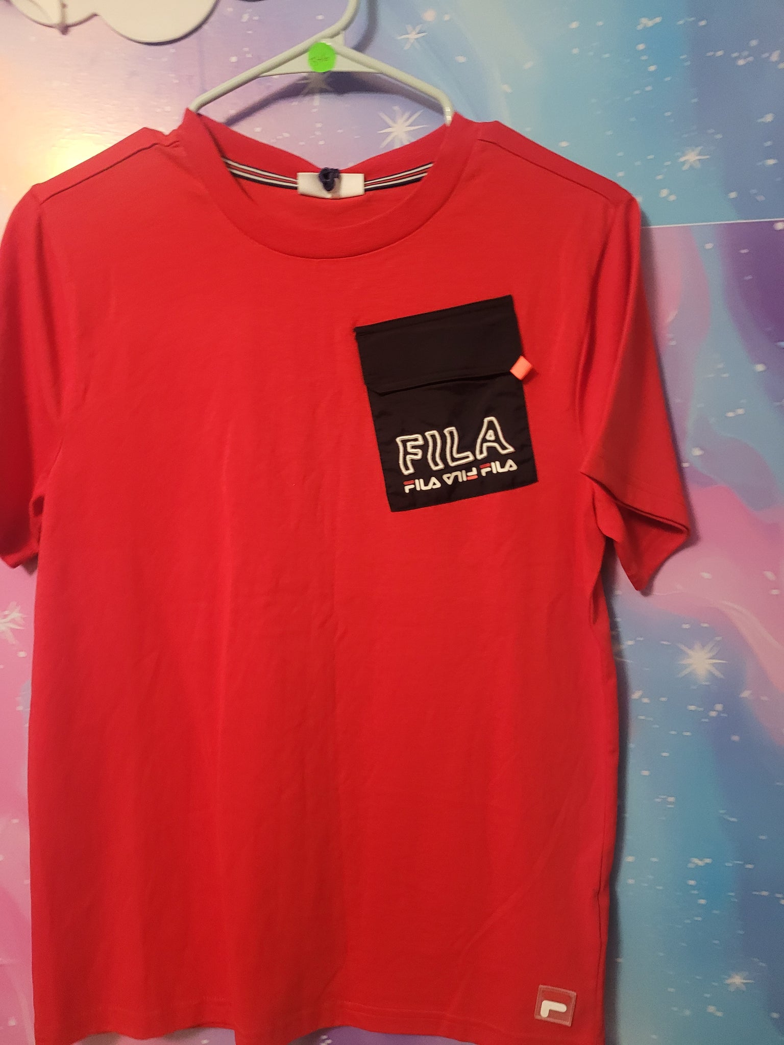 Expertly crafted for comfort and style, this FILA Red Short Sleeve Shirt is an essential addition to your wardrobe. Made with high-quality materials, it features a convenient front pocket for added functionality. Stay cool and confident all day long in this classic shirt.