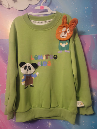 This green 3D sweatshirt is adorned with cute and adorable animal designs, making it the perfect addition to any child's wardrobe. Made of comfortable and high-quality materials, this sweatshirt is sure to keep your little one warm and stylish. Available in a size 7.