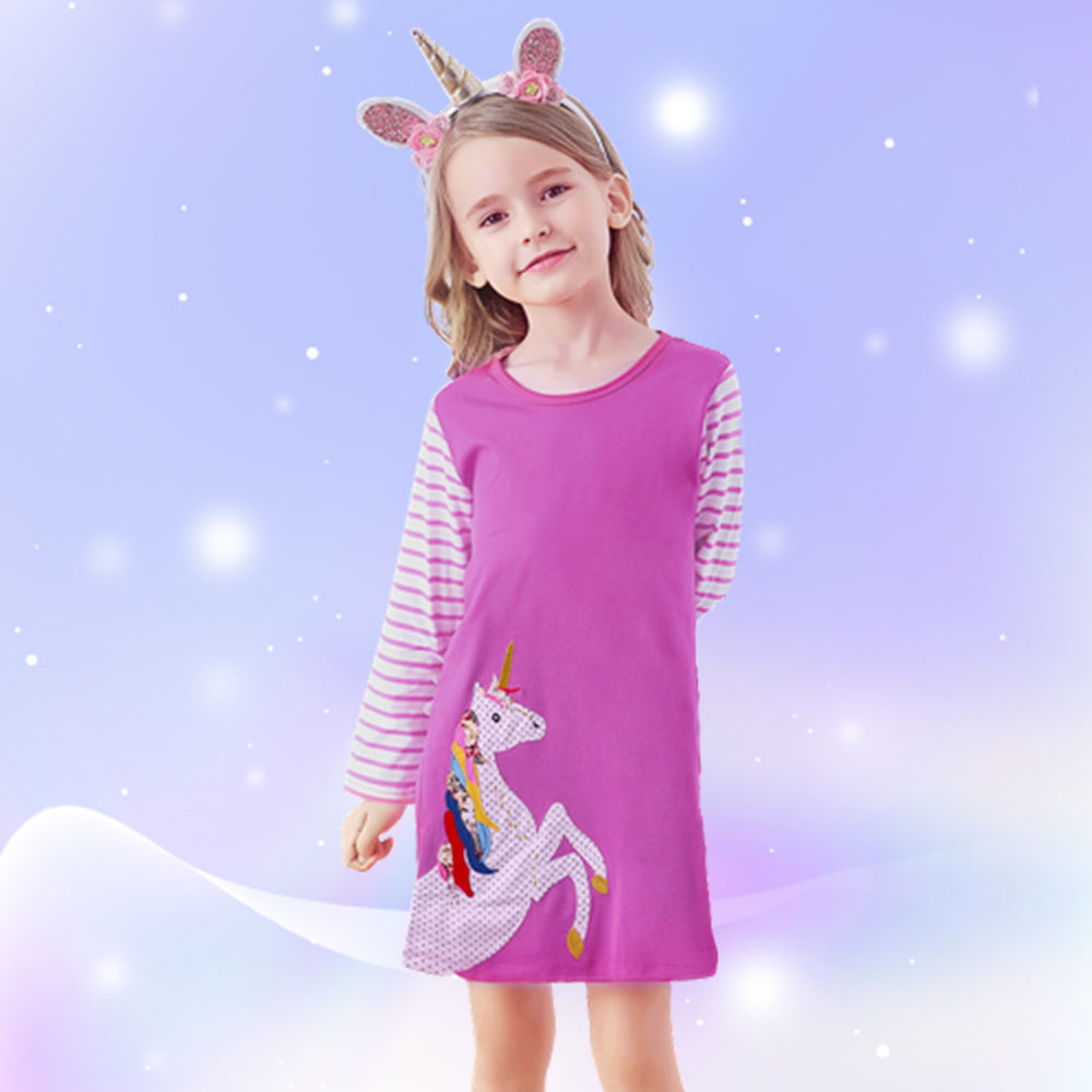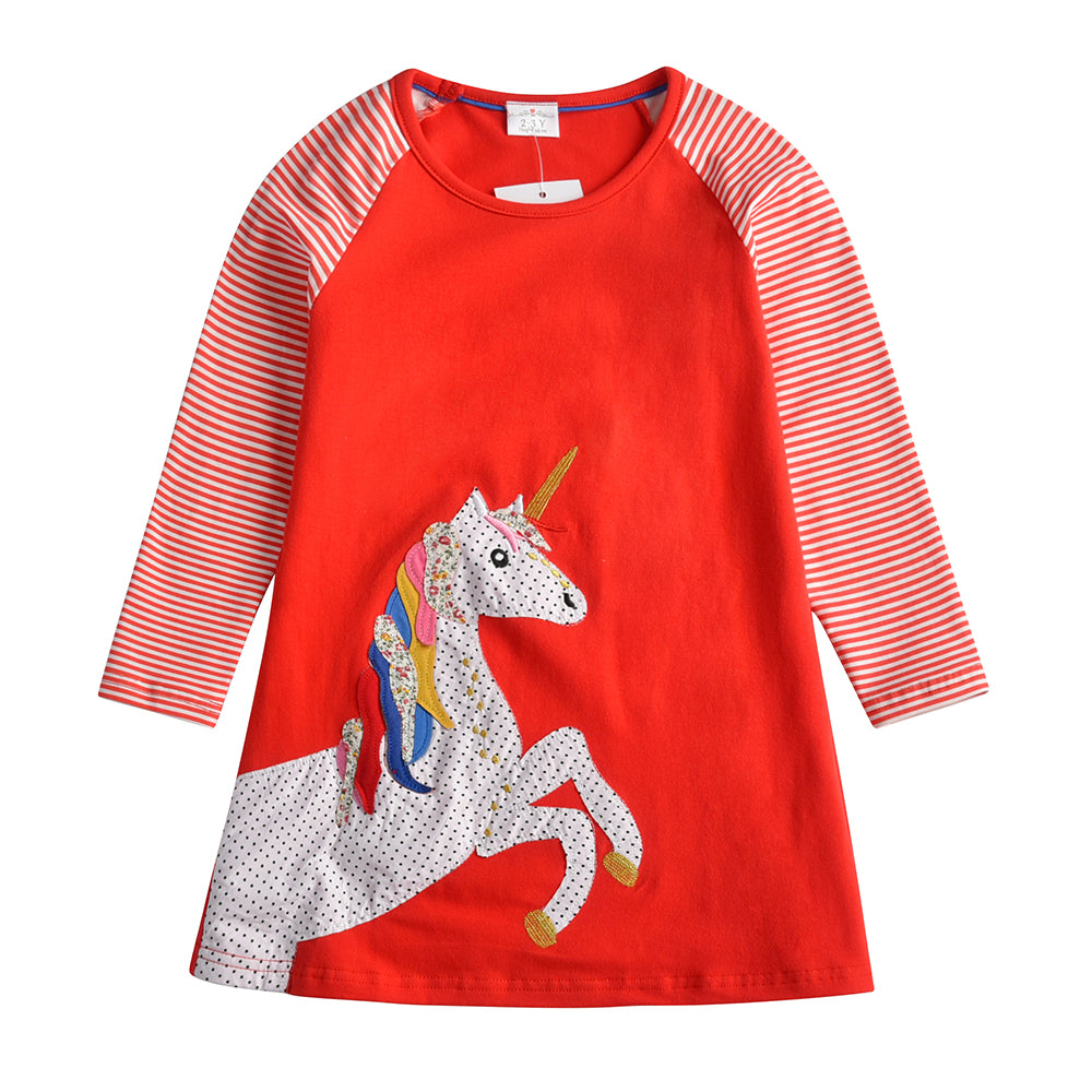 Cotton Long Sleeve Straight Unicorn Dress