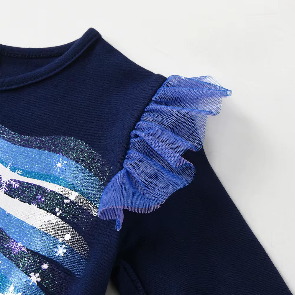 Twirl into magic with this enchanting purple unicorn dress! Crafted from soft cotton with delicate mesh accents, the long sleeves offer comfort while the whimsical unicorn design sparks joy and imagination. Perfect for little dreamers who want to celebrate their magical side, this dress combines playful style with everyday wearability. Whether it's playdates, parties, or just spreading unicorn vibes, this charming piece is sure to make any day feel extra special.
