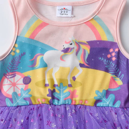Unicorn Rainbow Dress with Purple Tulle Skirt