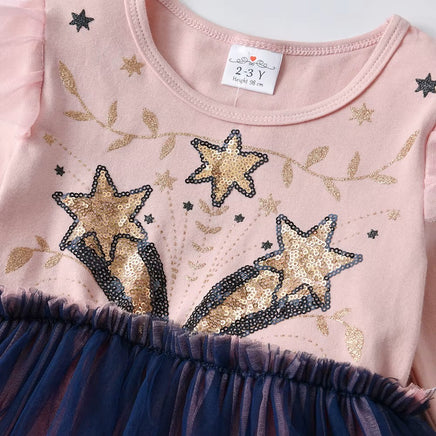 Sequin Bunny Star Ears Cotton Dress - Pink and Gold
