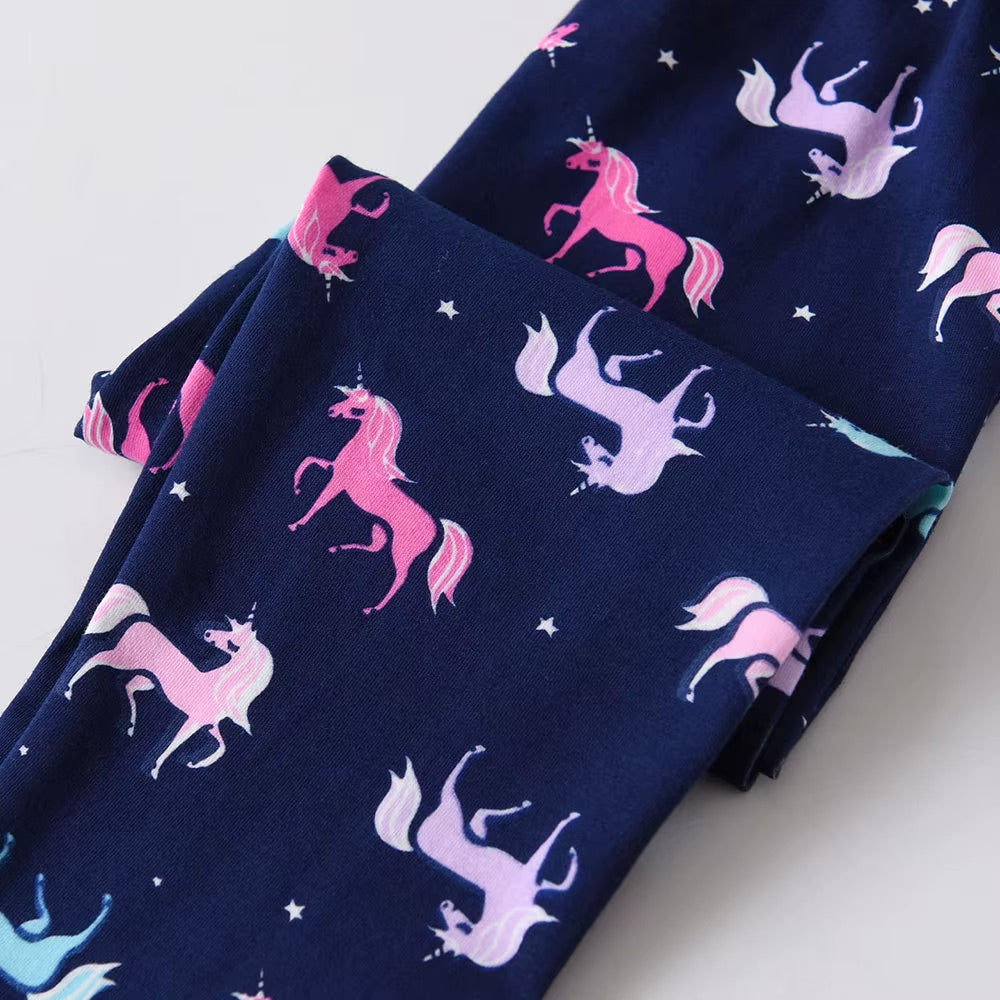 Magical comfort meets everyday style with these whimsical Unicorn Navy Cotton Leggings. Crafted from soft, breathable cotton, they're perfect for playtime, lounging, or adventures around town. The enchanting unicorn design brings a touch of fantasy to any outfit, while the navy base keeps things versatile and easy to mix and match. Stretchy and durable, these leggings move with your child through every imaginative moment. A delightful choice for little dreamers who love all things magical!