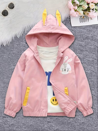 Stay cozy and cute with this playful lightweight windbreaker featuring adorable bunny ear details. The easy zip-up design makes layering effortless, while the breathable fabric keeps you comfortable during outdoor adventures. Perfect for spring strolls, casual outings, or adding a whimsical touch to your everyday look. Whether you're heading to the park or catching up with friends, this jacket brings fun and function together in one delightful package.