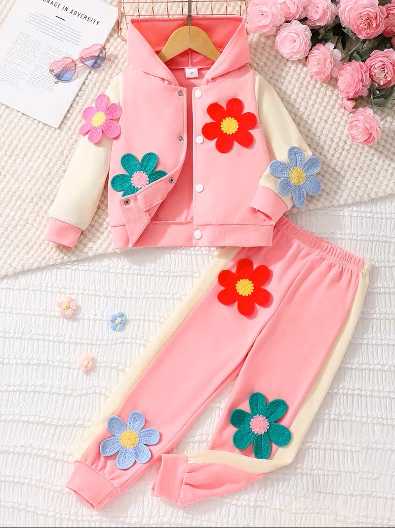 Bring the garden to life with this charming two-piece outfit featuring eye-catching 3D floral embellishments! Perfect for adding a whimsical touch to your wardrobe, this playful set combines comfort with creative style. The dimensional florals create texture and visual interest that'll have everyone asking where you found such a fun piece. Whether you're heading out for a casual day or want to make a statement, this adorable ensemble delivers personality and pizzazz in every wear.