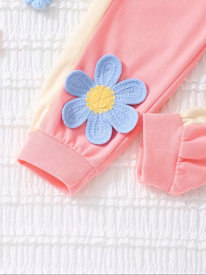 Adorable 3D Floral Decor Two-Piece Outfit