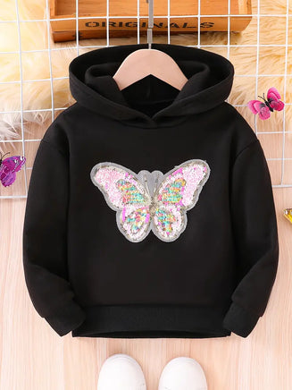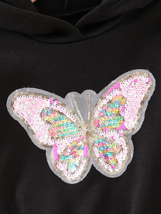 Dziewczęca modna i swobodna bluza z kapturem z długim rękawem i cekinami z motylami na jesień i zimę
