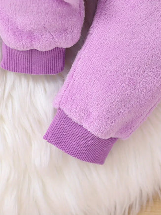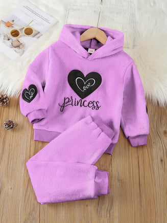 The Princess Plush Winter Fashion Fleece Two Piece Set is a cozy and stylish outfit for girls, perfect for the colder seasons. Featuring a purple color with a princess theme, this set includes a plush fleece jacket and matching pants with long sleeves for warmth. The casual style and soft fabric make it comfortable for everyday wear, adding a touch of whimsy to any young girl's wardrobe. Ideal for winter, fall, and spring, this 2-piece set is a cute and practical choice for any occasion.