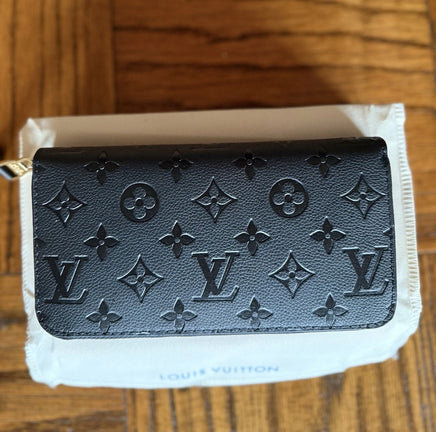 Luxury Embossed Monogram Leather Long Wallet – Fold Over – Black incudes Box