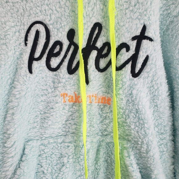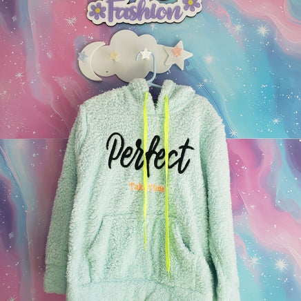 The Mint Green Fleece Hoodie with Neon Accents is a stylish and cozy pullover hoodie perfect for girls size 7. Made from soft polyester fleece, this hoodie features long sleeves, a hood, and a vibrant green color with neon accents. Ideal for casual occasions in the winter, fall, or spring, it is easy to care for with machine washable instructions. Whether for school or everyday wear, this hoodie adds a fun and trendy touch to any outfit.